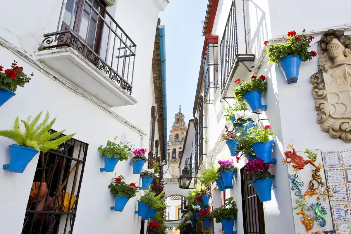 Nuestro recorrido sigue hasta la Plaza de las Tendillas, un lugar central para los cordobeses donde se celebran eventos importantes. Exploraremos el legado musulmán con una parada en la colorida Calleja de las Flores, famosa por sus macetas de geranios.