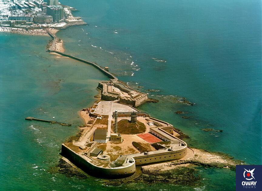 Although there are no archaeological remains, historical sources indicate that a temple dedicated to Moloch/Kronos was located on this island during the Phoenician era. Strabo said that the city was located in the western part of the island. Let us remember that the natural space suffered a sedimentation that turned it into a peninsula. However, no material evidence has been found for this building. What can be documented is that the beginnings of the castle date back to the 15th century. In 1457 a Venetian ship arrived at the Cadiz coast whose passengers were sick with the plague. Since it was impossible for them to access the beach, they stayed on the islet where, from the remains of a Muslim lighthouse, they built a chapel dedicated to San Sebastian. It would not undergo many modifications except that in 1613 a watchtower was built with a double function: defensive and signaling for sailors. During the 18th century the construction of the current defensive structure began. Cadiz was an enclave that was gaining power and through which riches were arriving so it was decided to reinforce security. To do this, work was carried out to install a perimeter moat, allowing access only by drawbridges, and a wall covering all the parts not protected by the natural rock. More defensive elements were added every few years so that we cannot know when the reforms were completed.